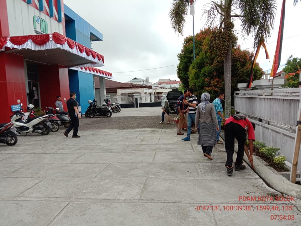 Jumat bersih di lingkungan Kantor PDAM Kota Solok. Goro bersama karyawan/tu PDAM Mari hidup sehat dan bersih